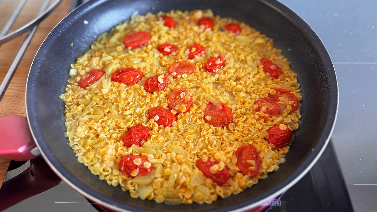 - Couvrez et laissez cuire 15 minutes à feu doux jusqu’à ce que les lentilles soient fondantes.