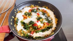 - Ajoutez la crème fraîche et les épinards réservés.